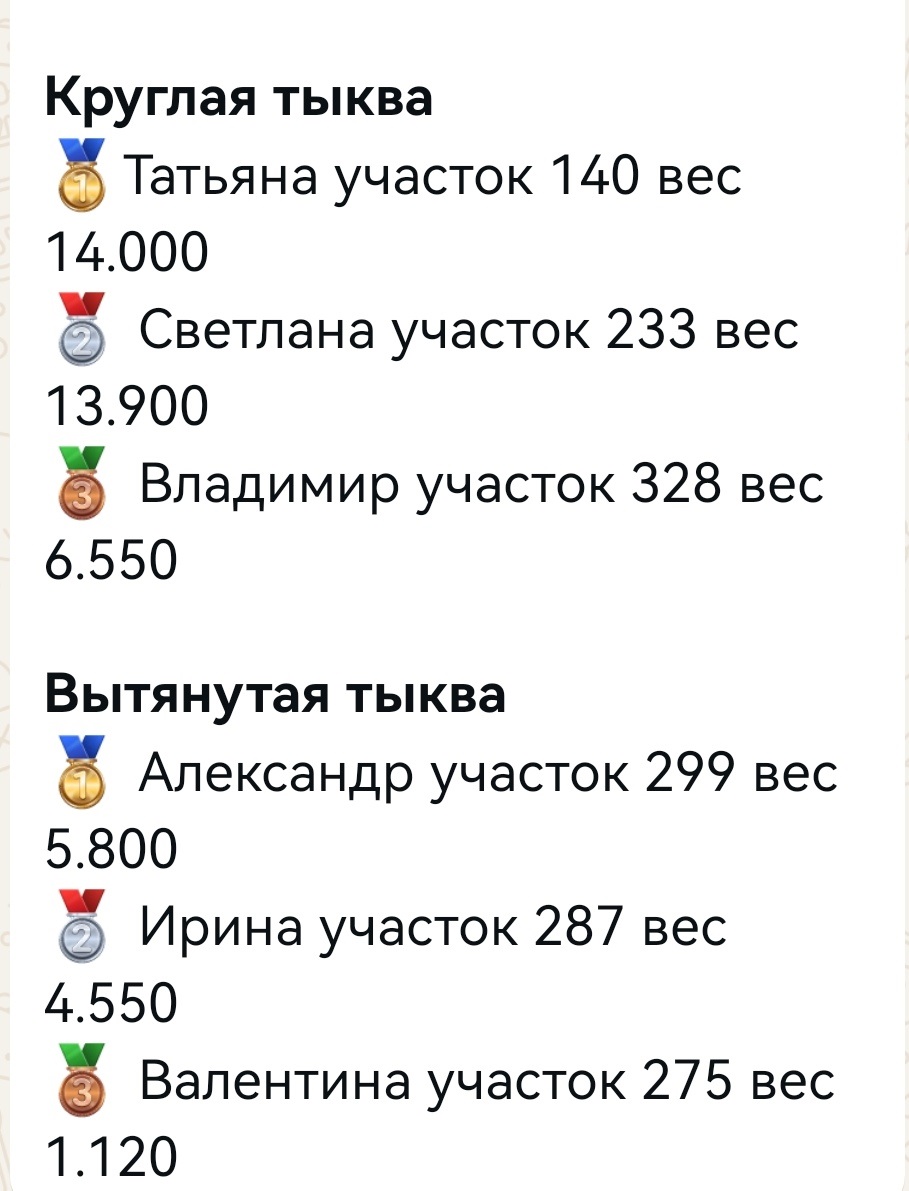 Объявление победителей в конкурсе "Самая большая тыква 2025"